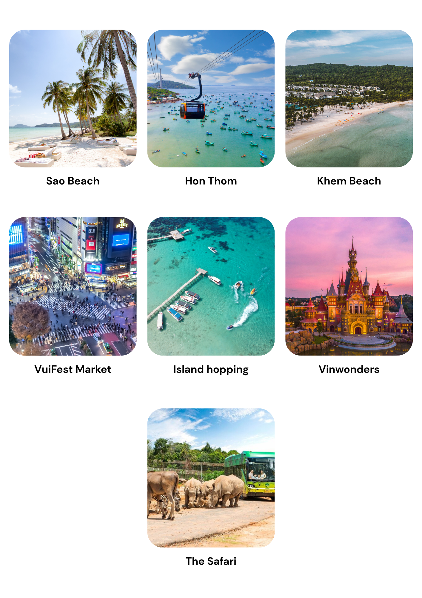 • Visit Hon Thom by Cable Car. Belonging to Sun World system – the en tertainment brand of Sun Group, Sun World Hon Thom offers the experience of a vibrant and exciting entertainment world with the Hon Thom cable car system. – The longest sea-crossing three-wire cable car in the world with a length of 7,899.9m.